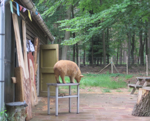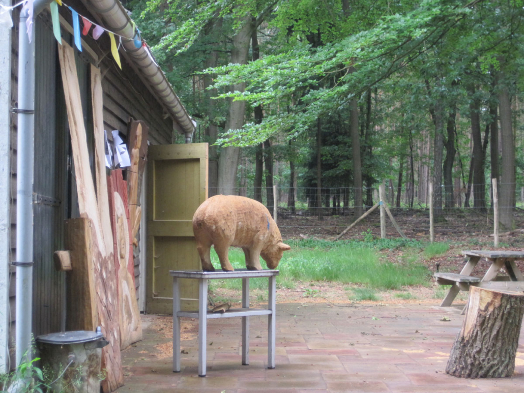 ’s Middags kun je doorwerken of kiezen voor een excursie of vrije tijd. We werken op een groot veld onder een overkapping, waar gereedschap, hout en werkbanken aanwezig zijn.
